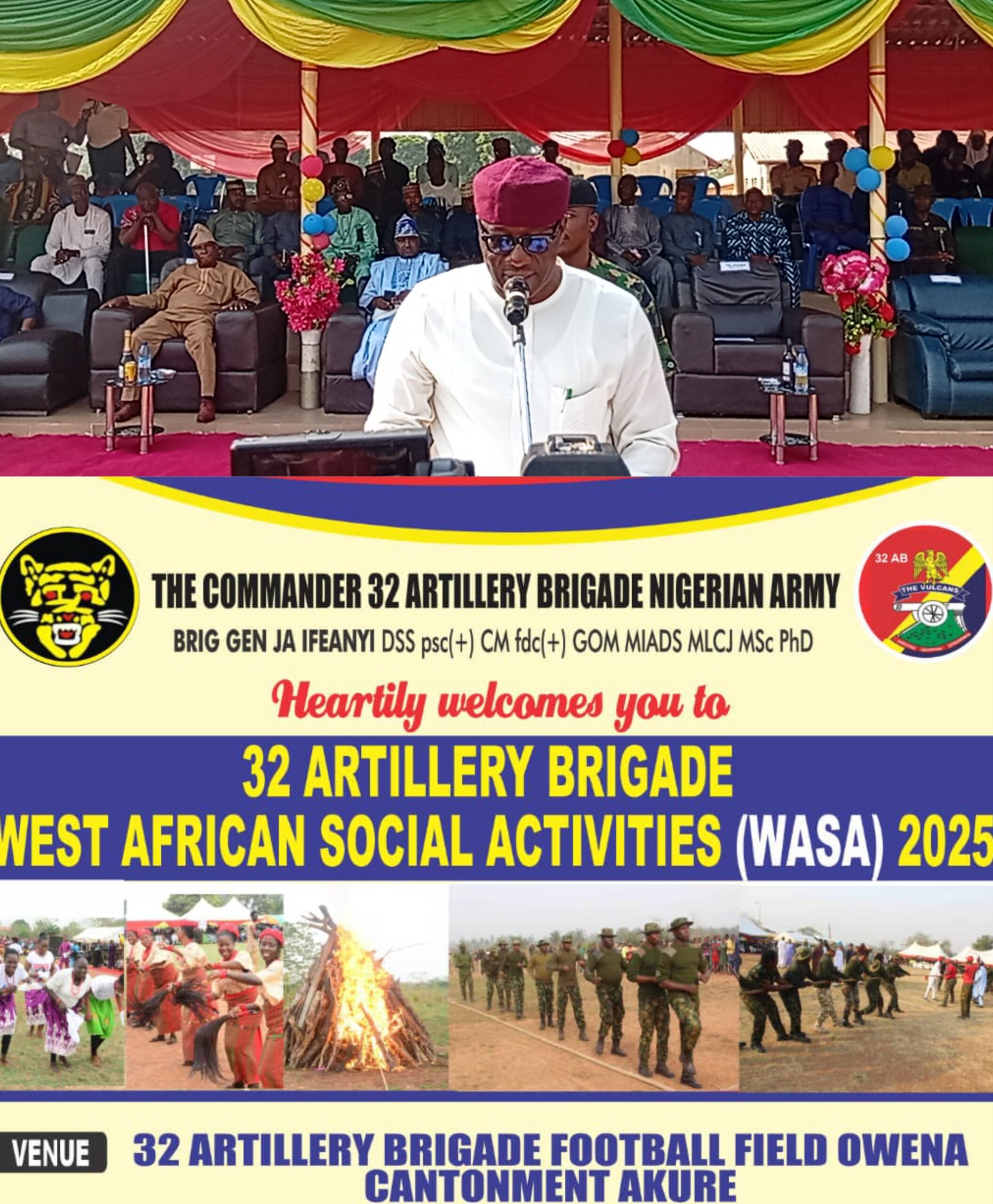 The 32 Artillery Brigade Nigerian Army, under the command of Brigadier General J. A. Ifeanyi, successfully hosted the 2025 West African Social Activities (WASA) at the Brigade Football Field, Owena Cantonment